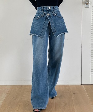 【ボトムス】ビジュー付き ゆったりストレートデニムパンツ