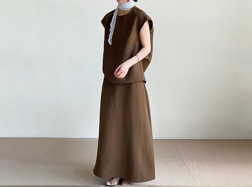 【セットアップ】【単品注文】Vネックねじりデザインシャツ+ハイウエスト美シルエットマーメイドスカート