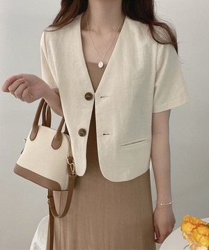 53.【アウター】Vネック コットンリネン カジュアル 冷房対策アウター 4色