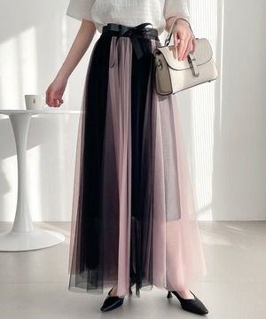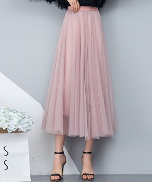 1.【スカート】リボン ハイウエスト チュール Aラインスカート