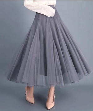 【ボトムス】無地チュール切り替えのフレアAラインスカート
