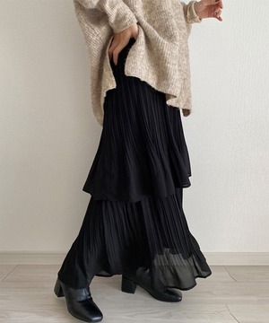 11.【スカート】高見え チュール切り替え プリーツティアードワンピース 多色展開