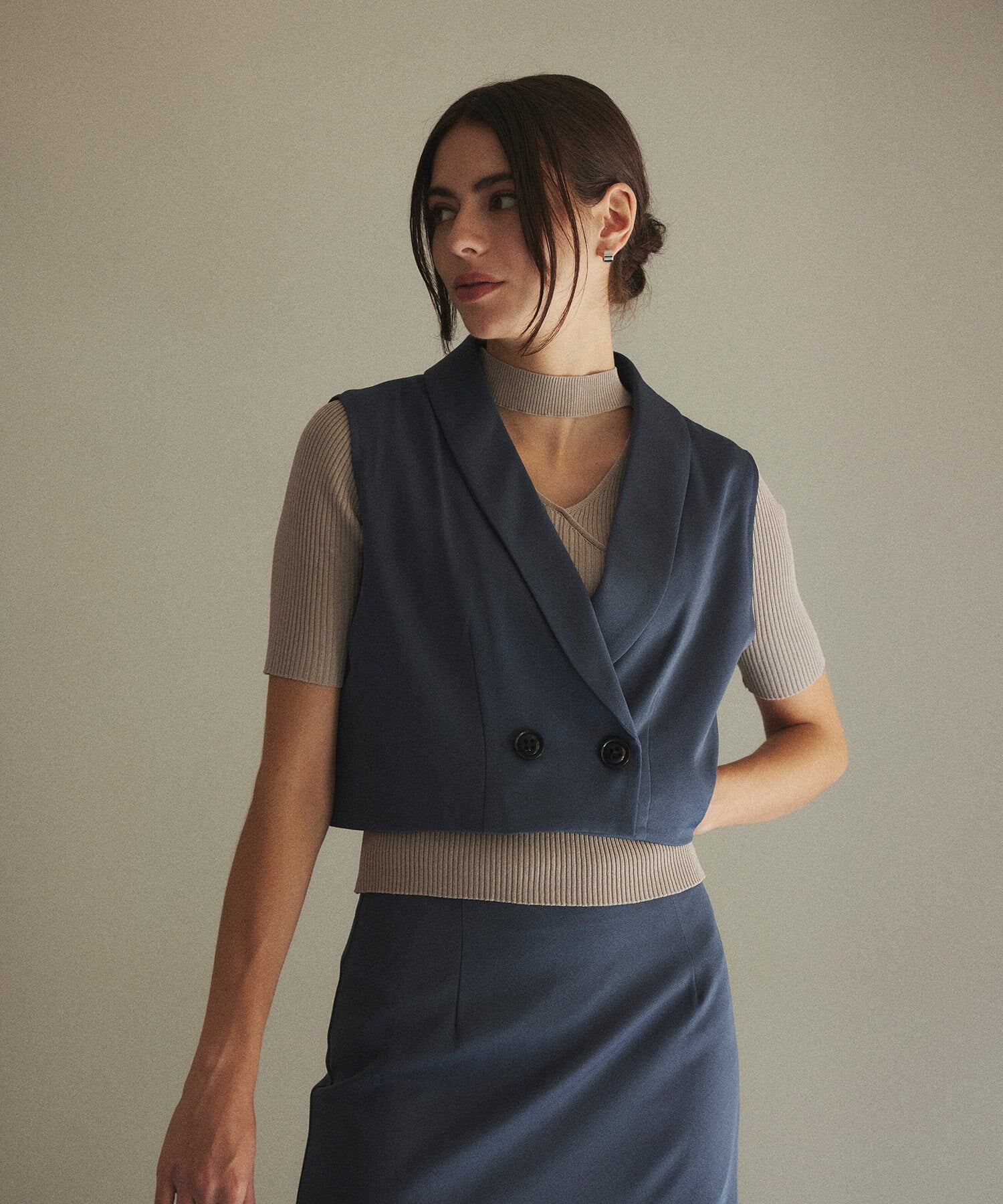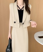 ショート丈テーラージレ&ハイウエストタイトスカートセットアップ(裏地付き)