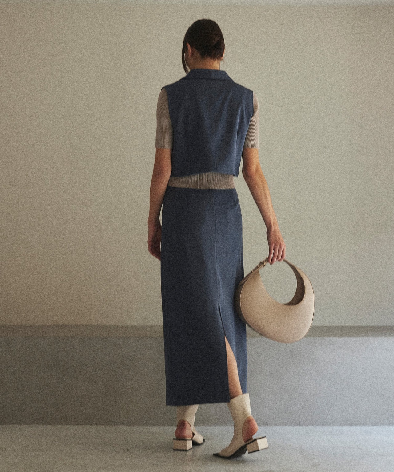 スカートはバックにスリットが入っているので、タイトながらも歩きやすさを重視。