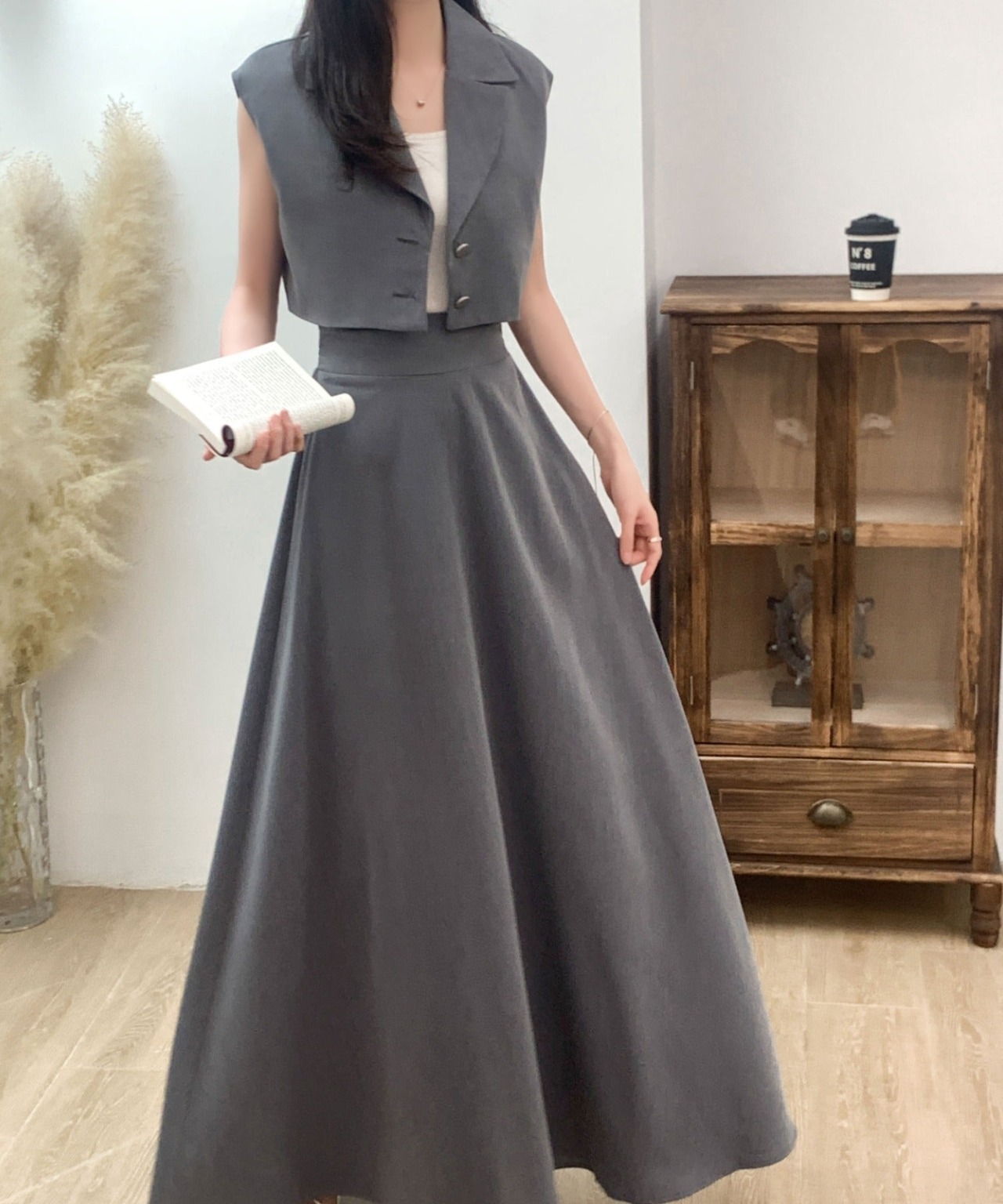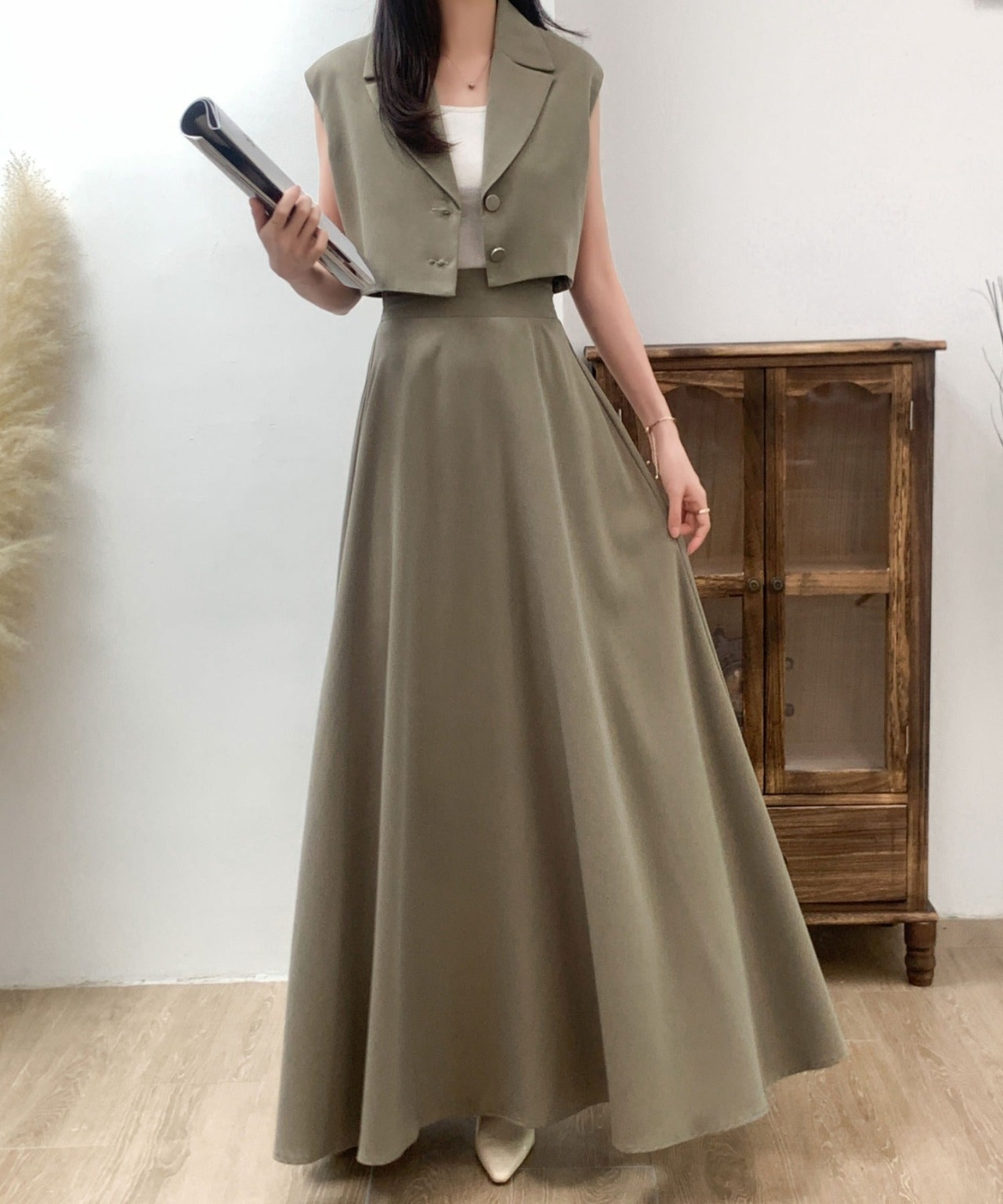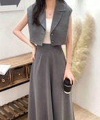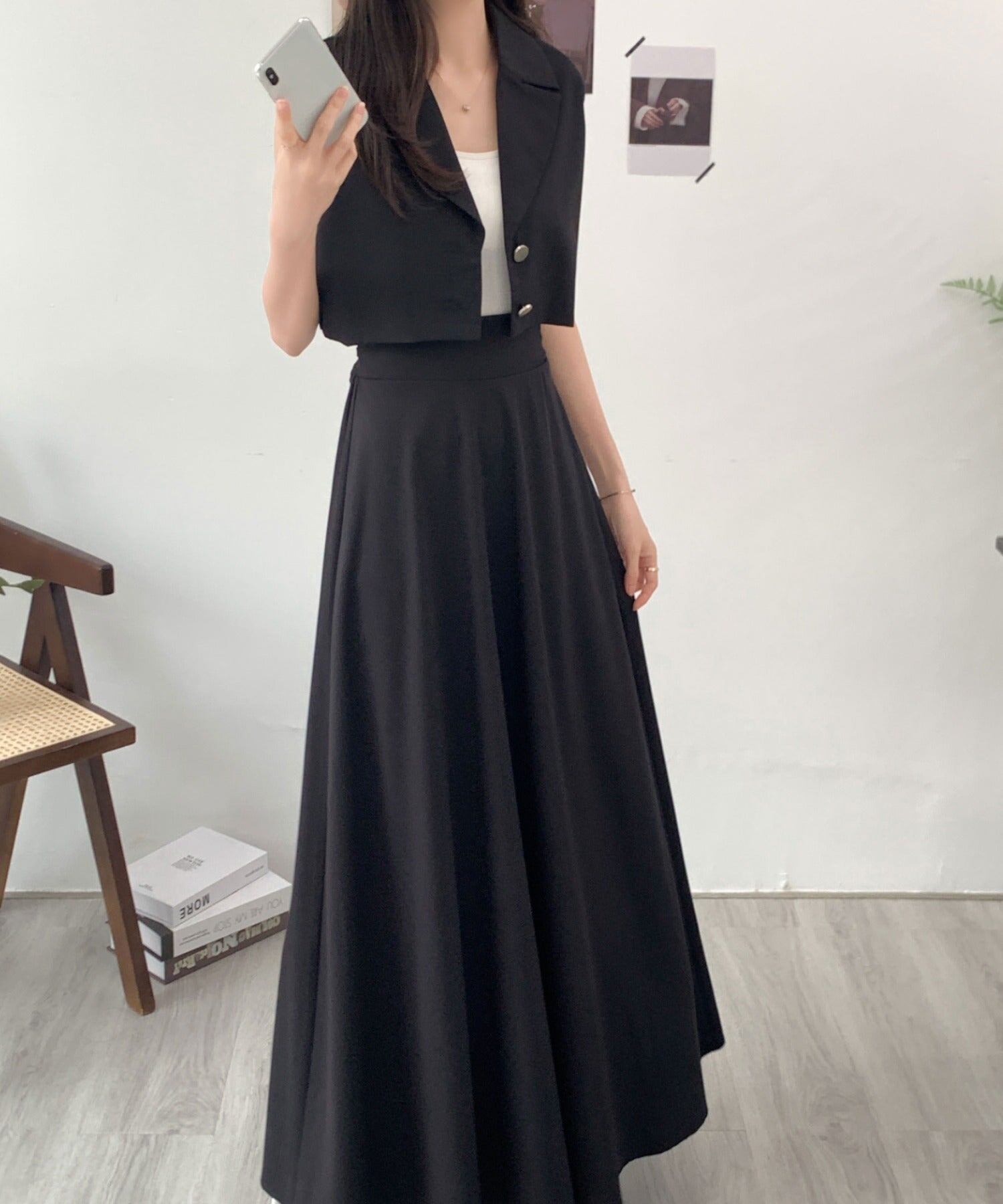 ショート丈ジャケット&ハイウエストボリュームフレアスカートセットアップ
