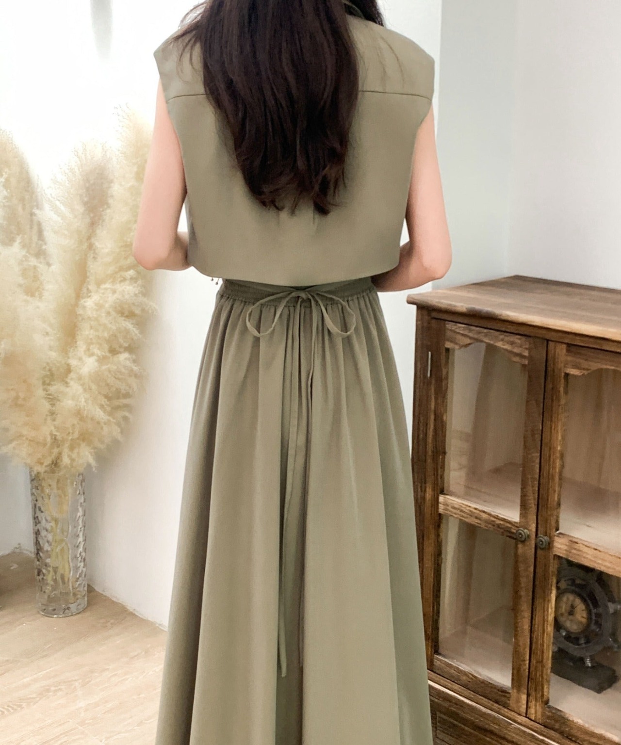 すっきりとしたショート丈なので、ウエストが細く見え、スタイルアップ効果のある1着。