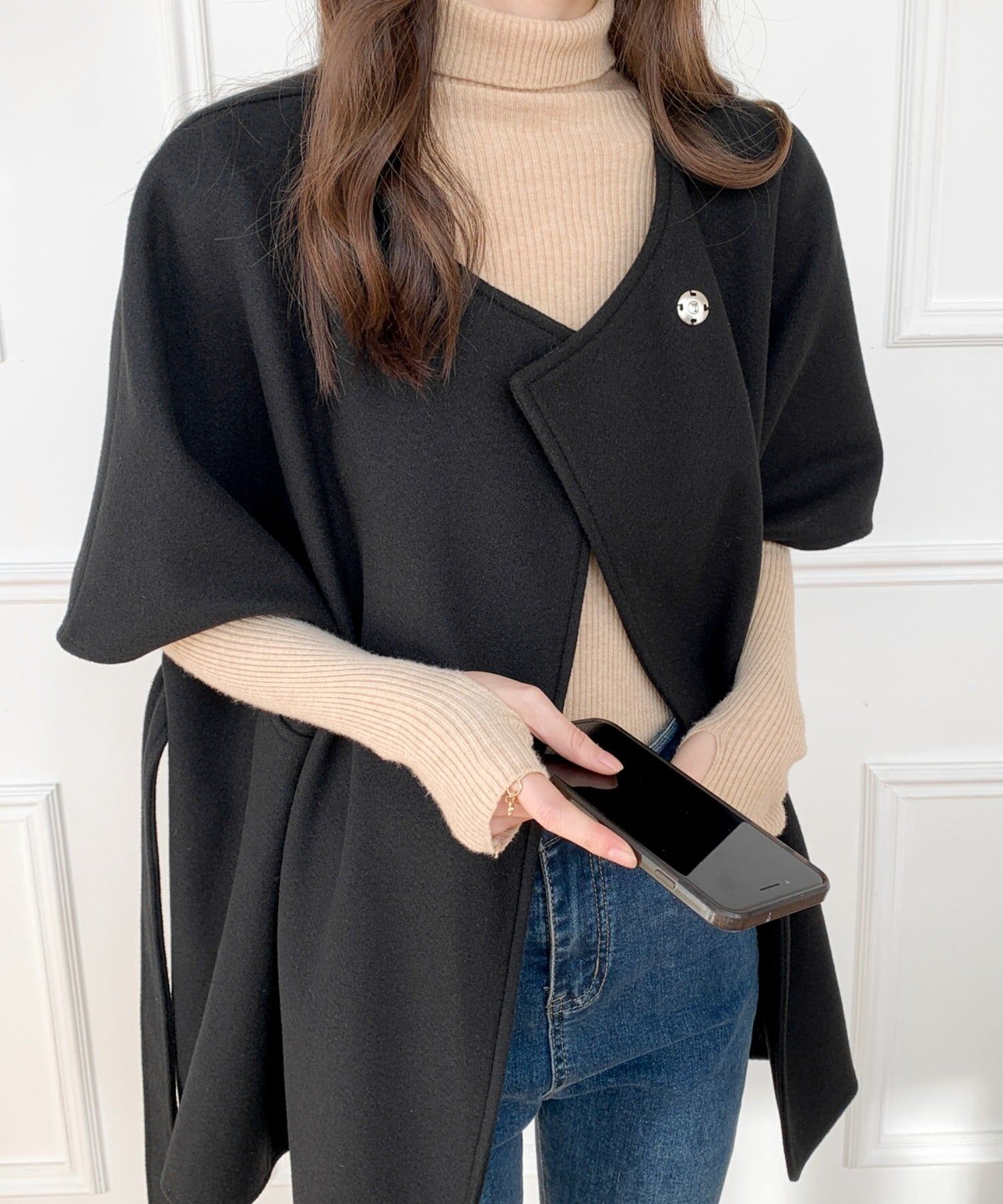 フェイクウールのニットメルトン素材で、やや厚手の生地で保温、防寒効果も◎