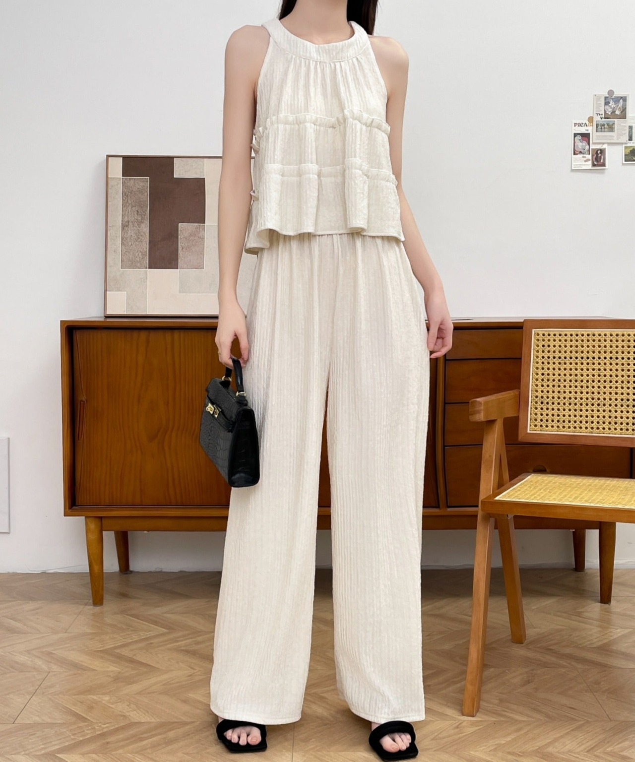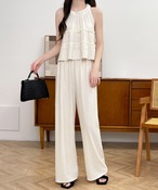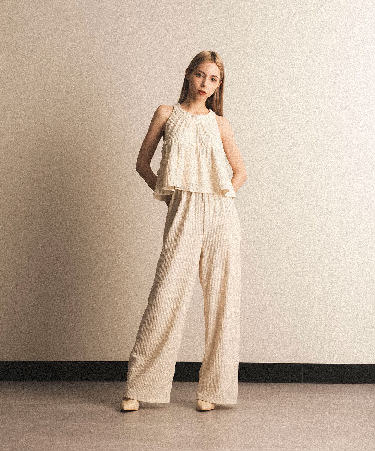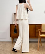ワッシャーティアードフレアブラウスパンツセットアップ