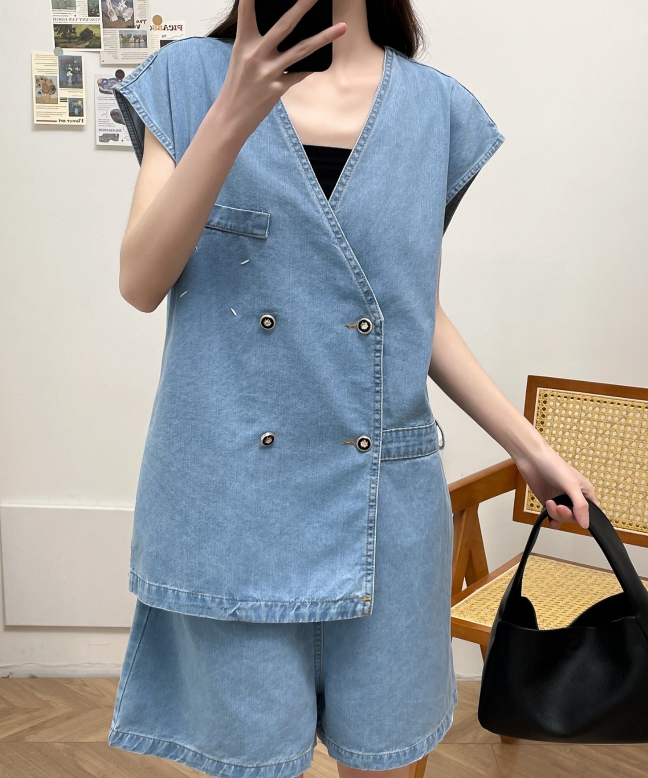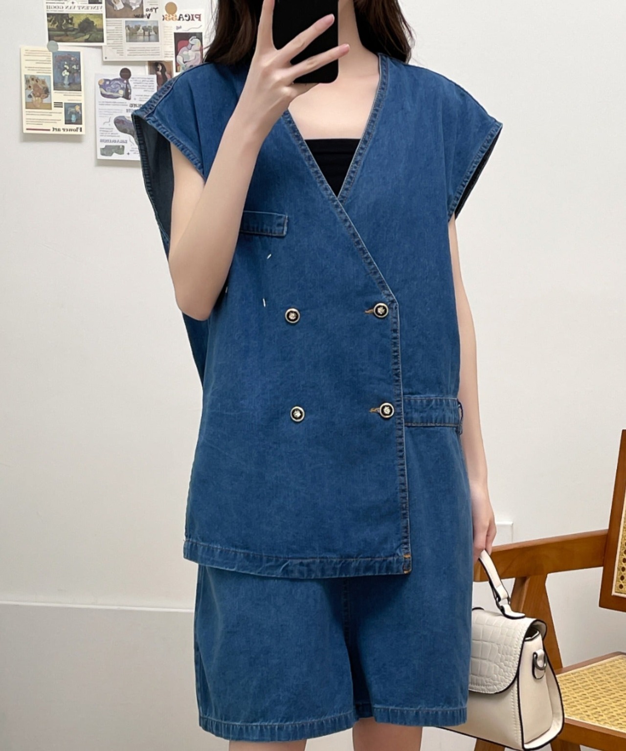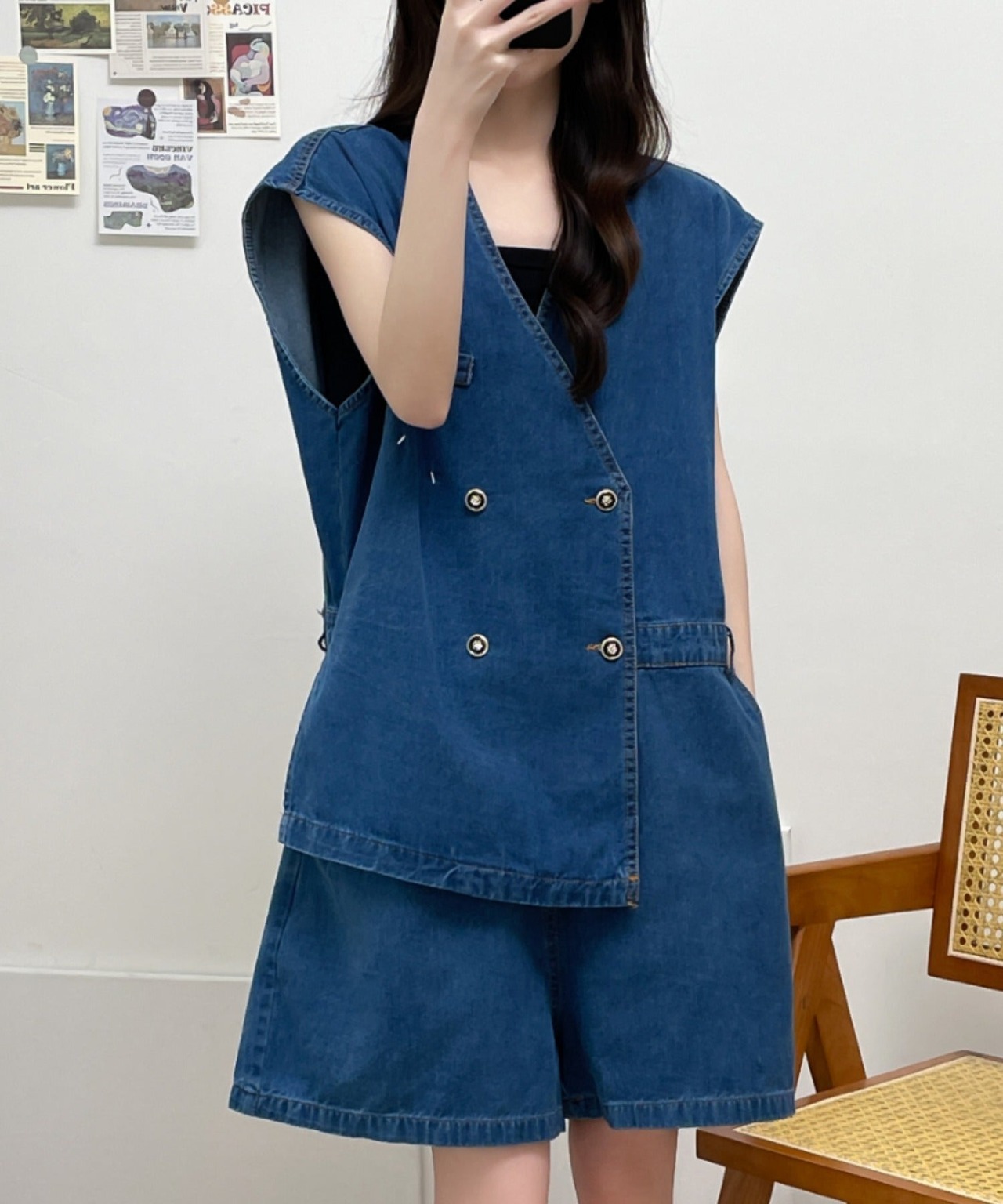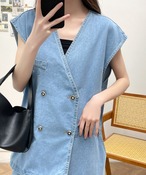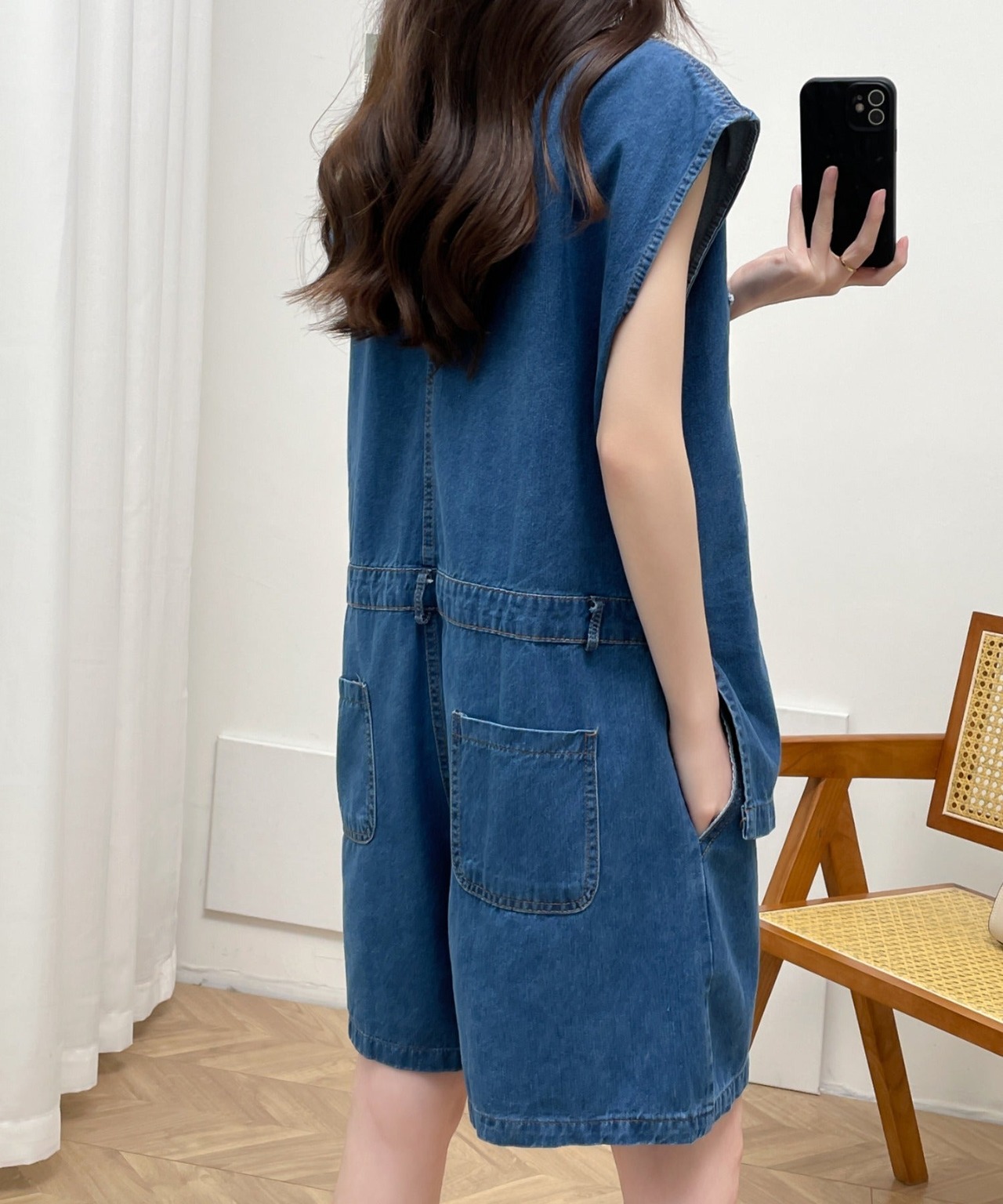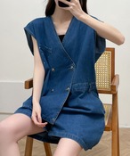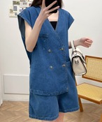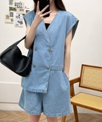 レイヤード風短パンデニムオールインワン