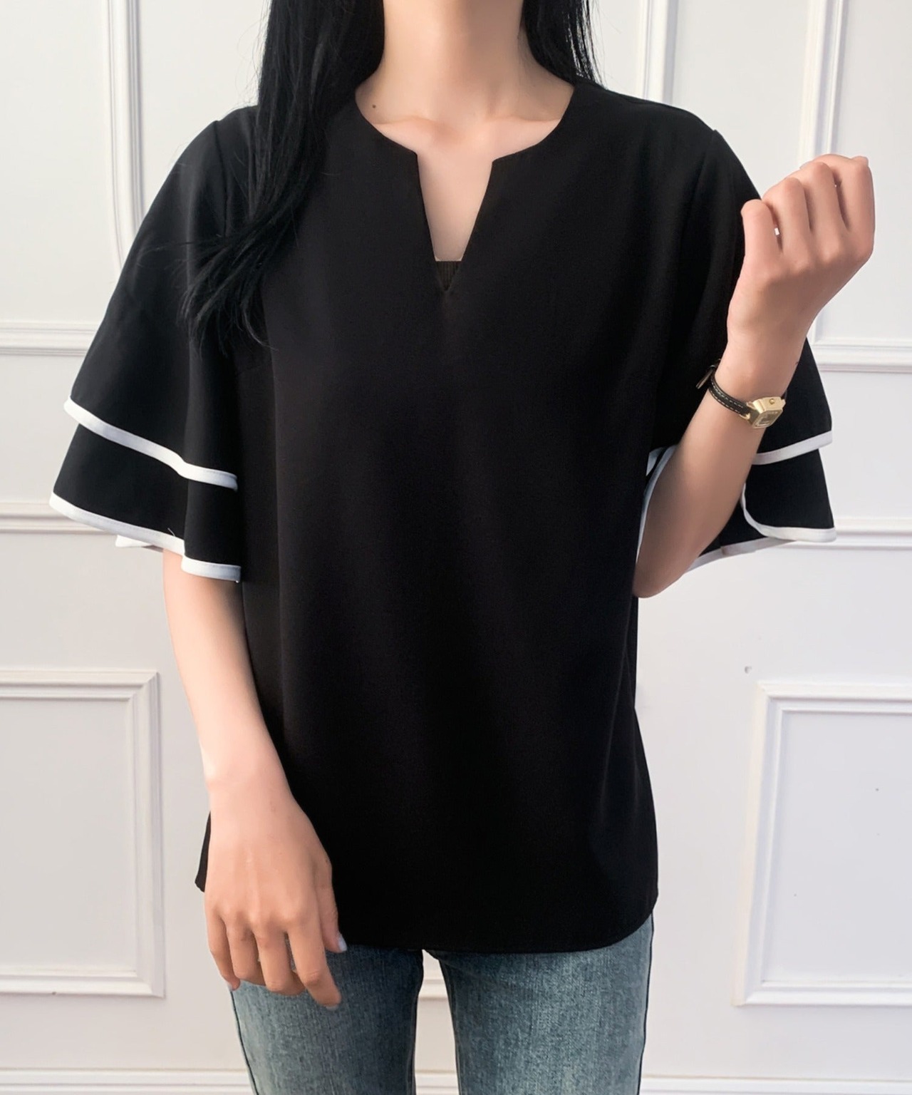 23.【トップス】Vネック 万能 五分袖 Tシャツ インナー