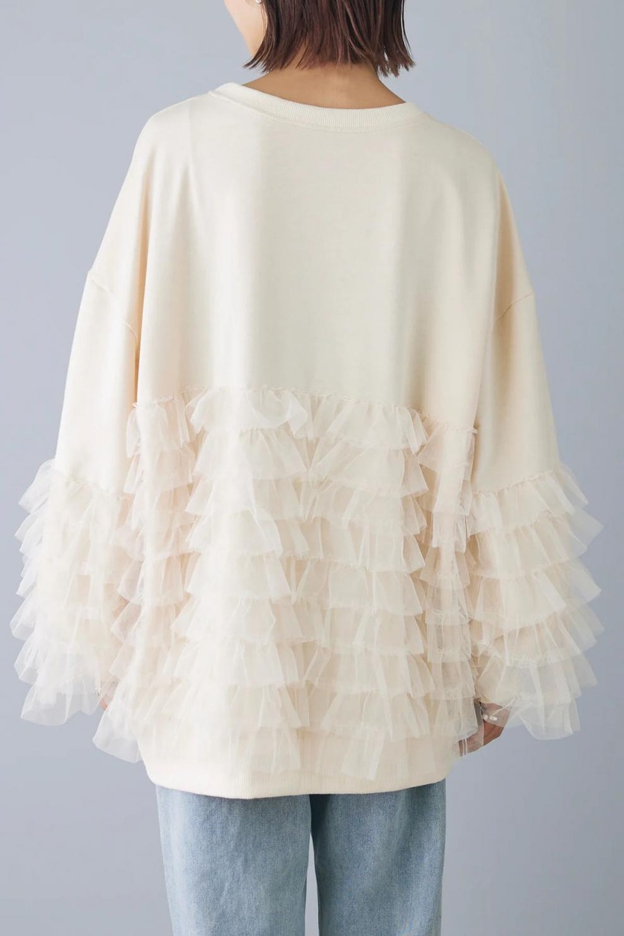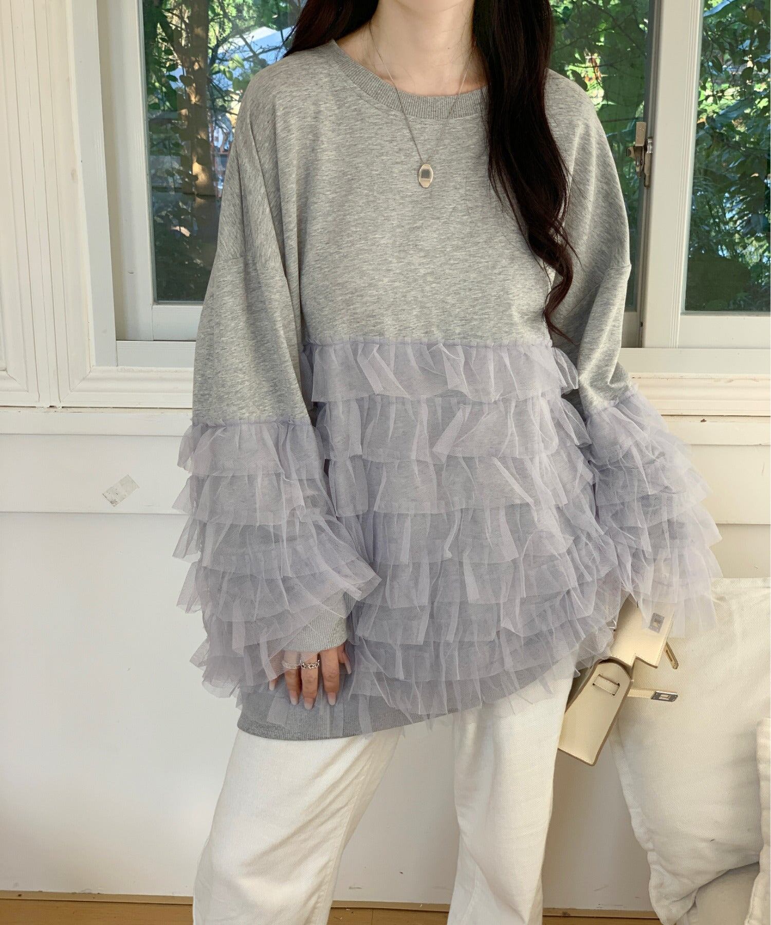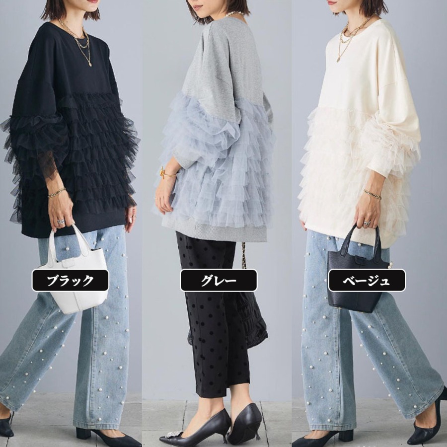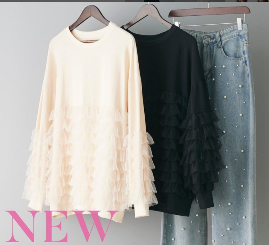 49.【トップス】ルーズ メッシュ切り替え 長袖 スウェット