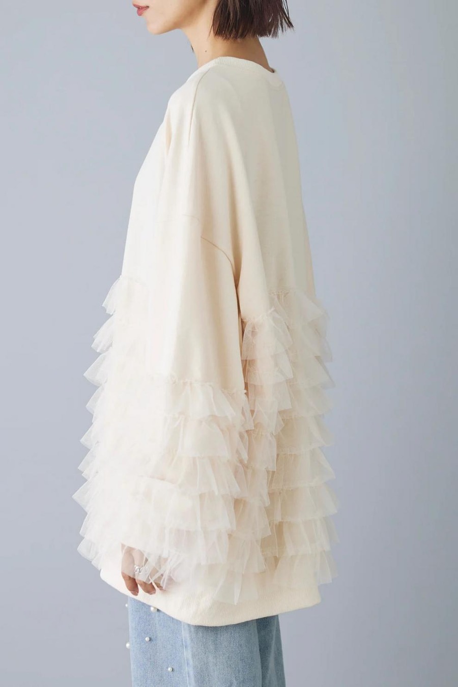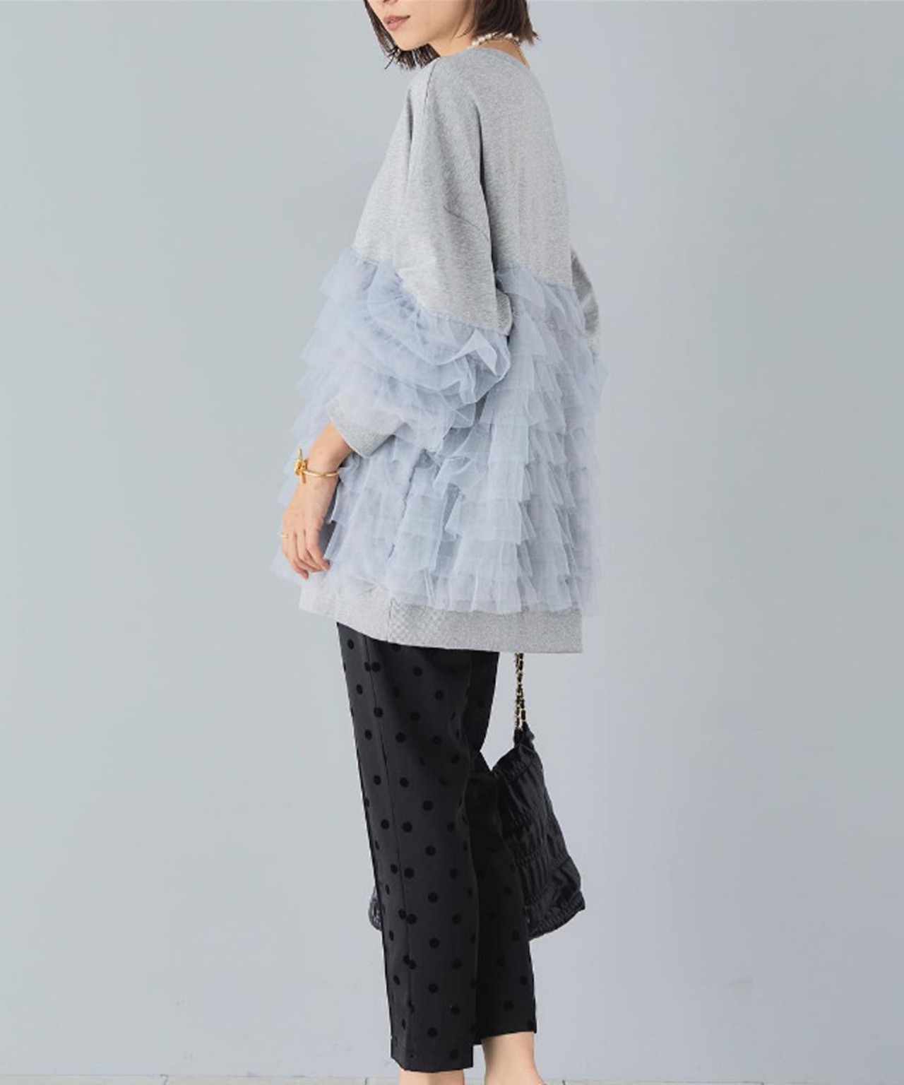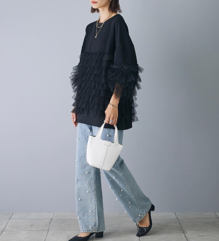 49.【トップス】ルーズ メッシュ切り替え 長袖 スウェット
