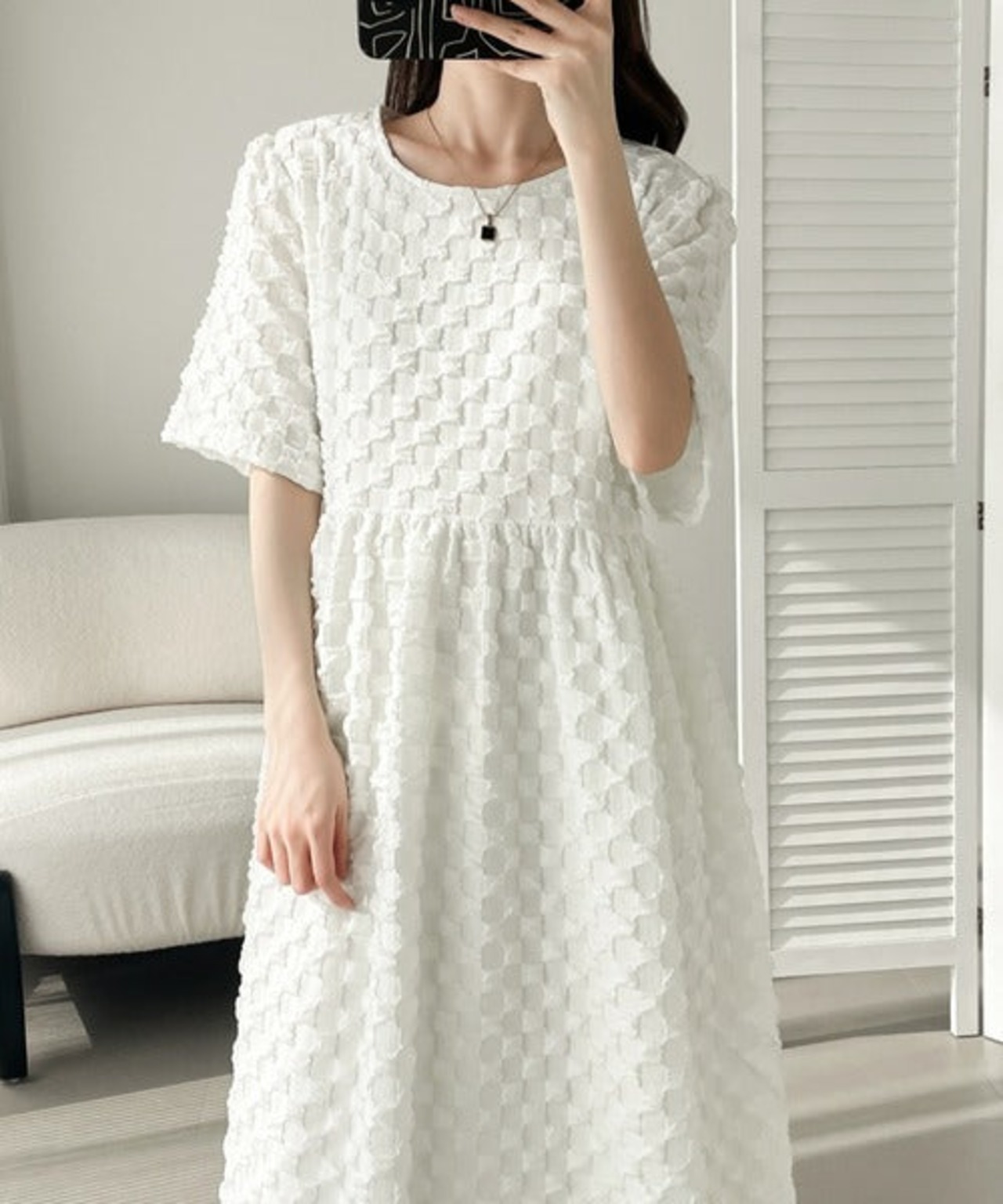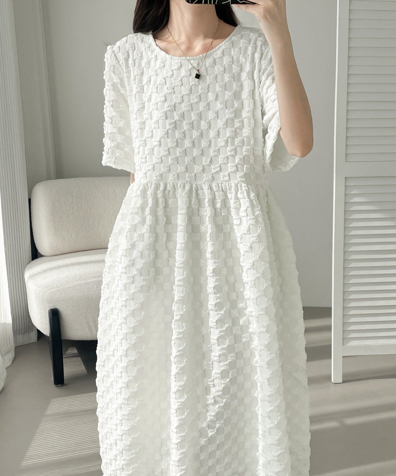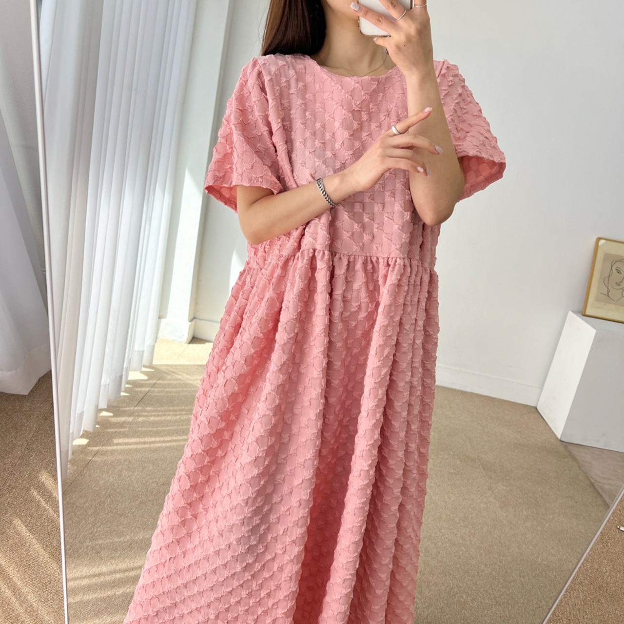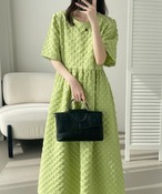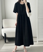 10.【ワンピース】甘め・若見え 丸首 立体ポコポコ素材 ゆったり 半袖ワンピース
