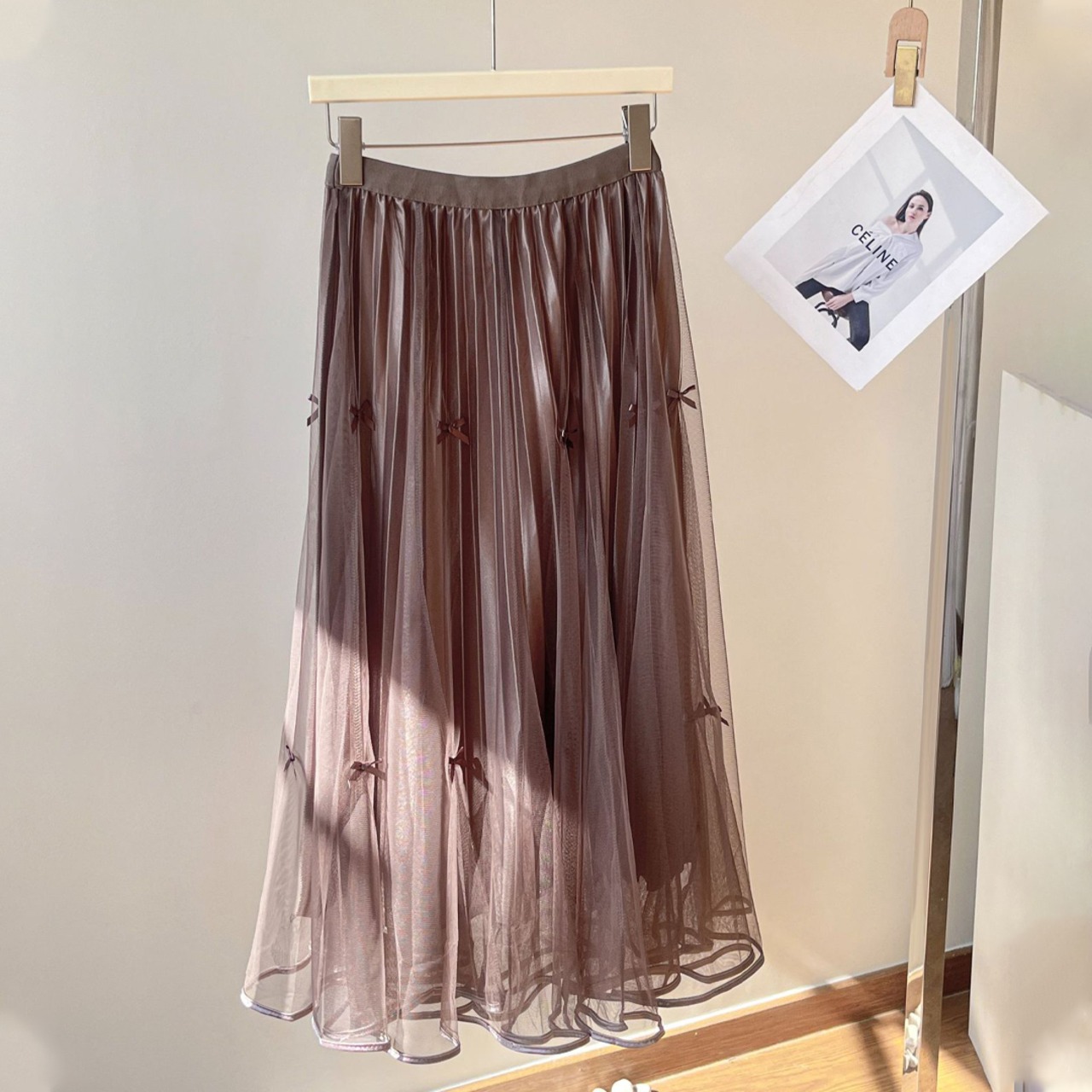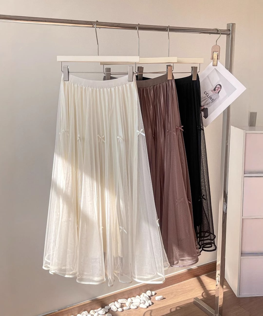 1.【スカート】リボン ハイウエスト チュール Aラインスカート