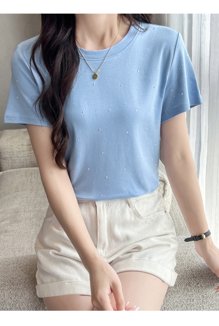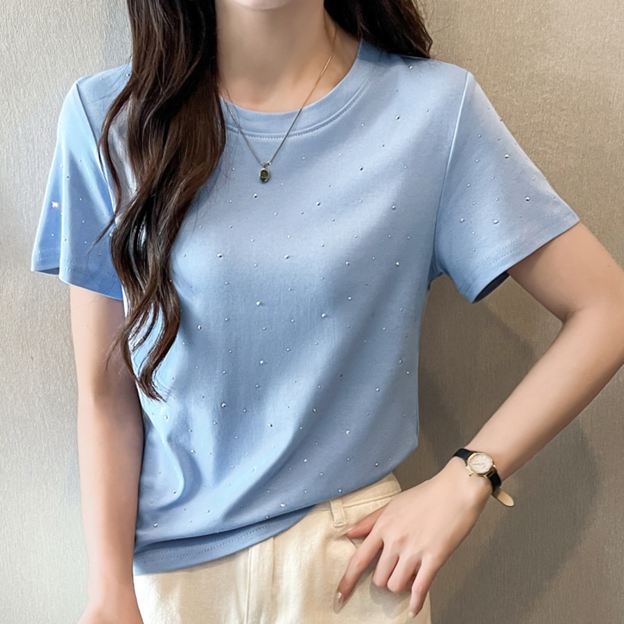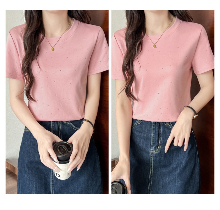 34.【トップス】ラインストーン 半袖 クルーネック Tシャツ 多色展開