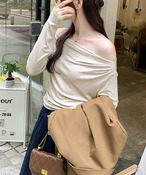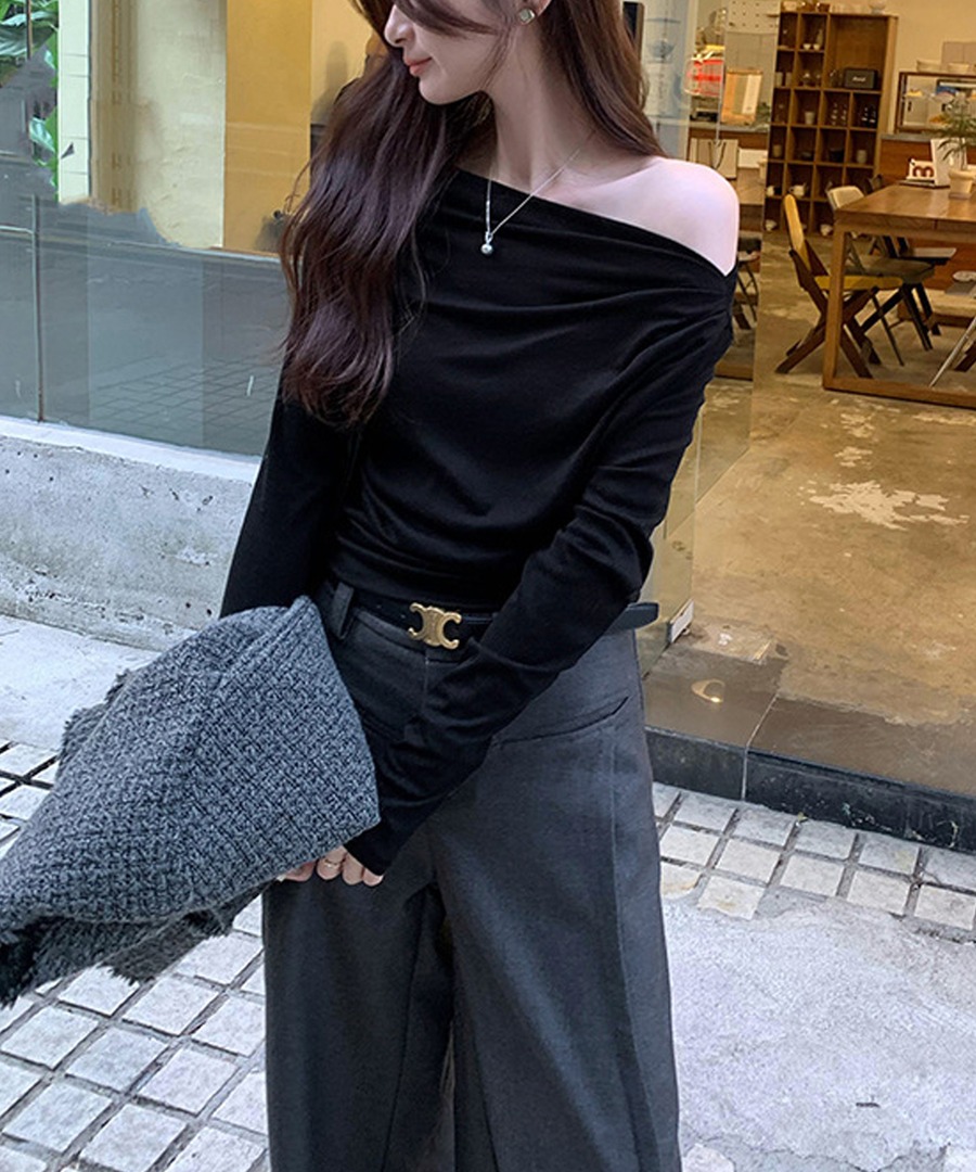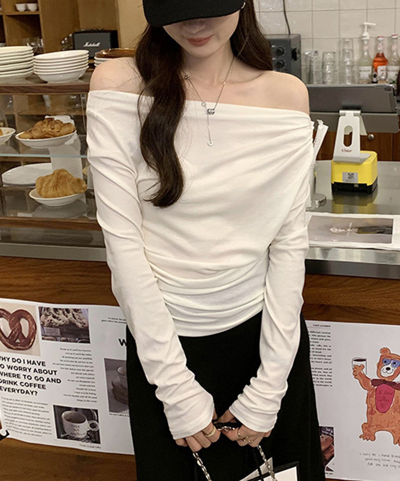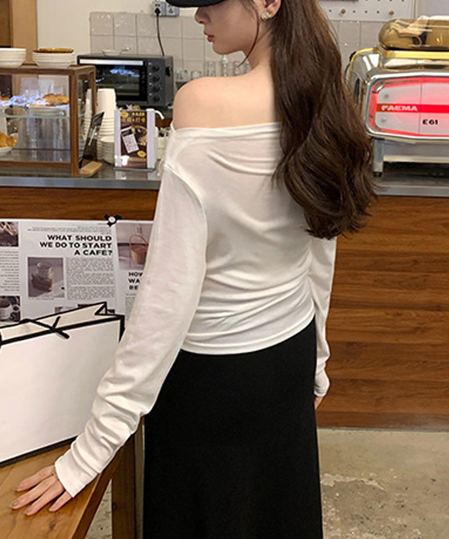 44.【トップス】オフショルダー スリム 長袖 インナーシャツ