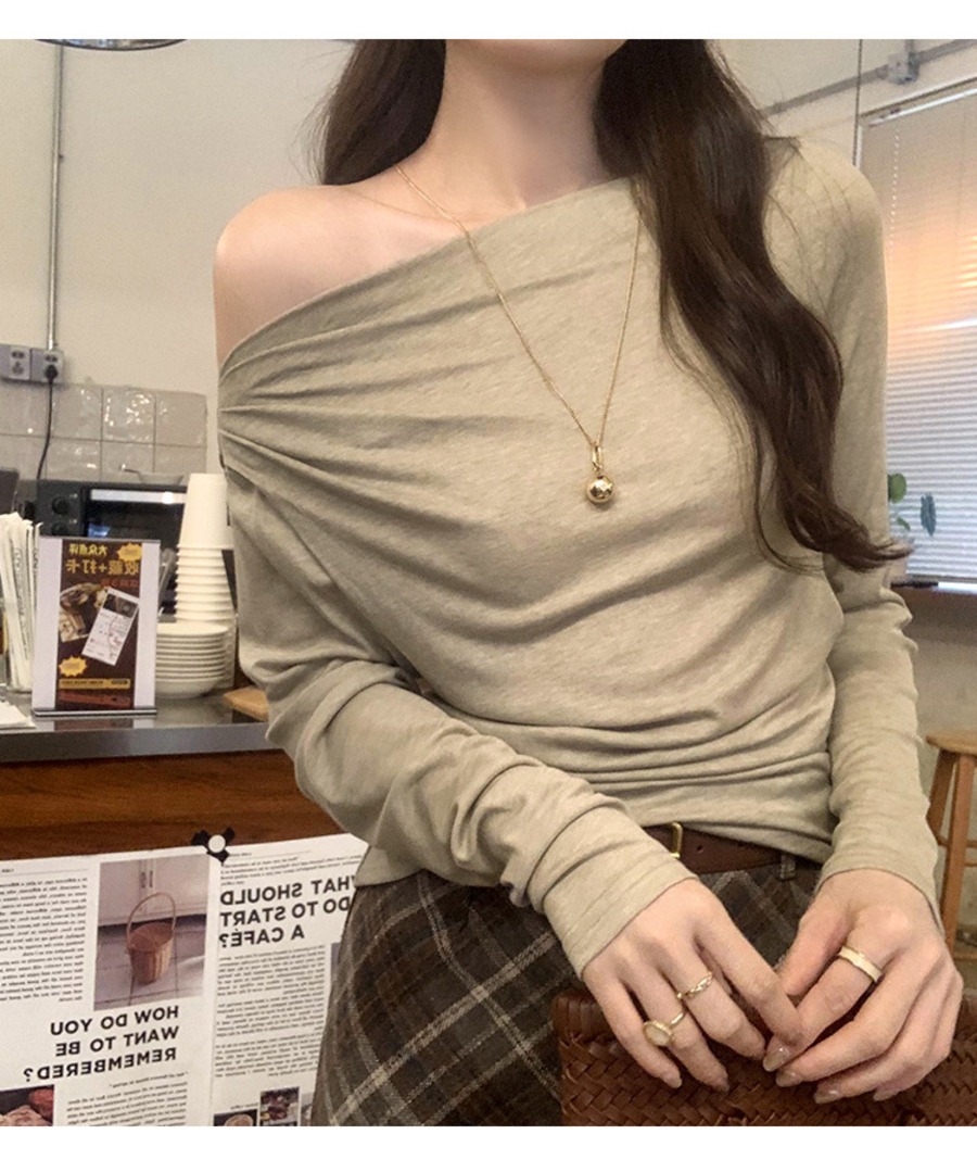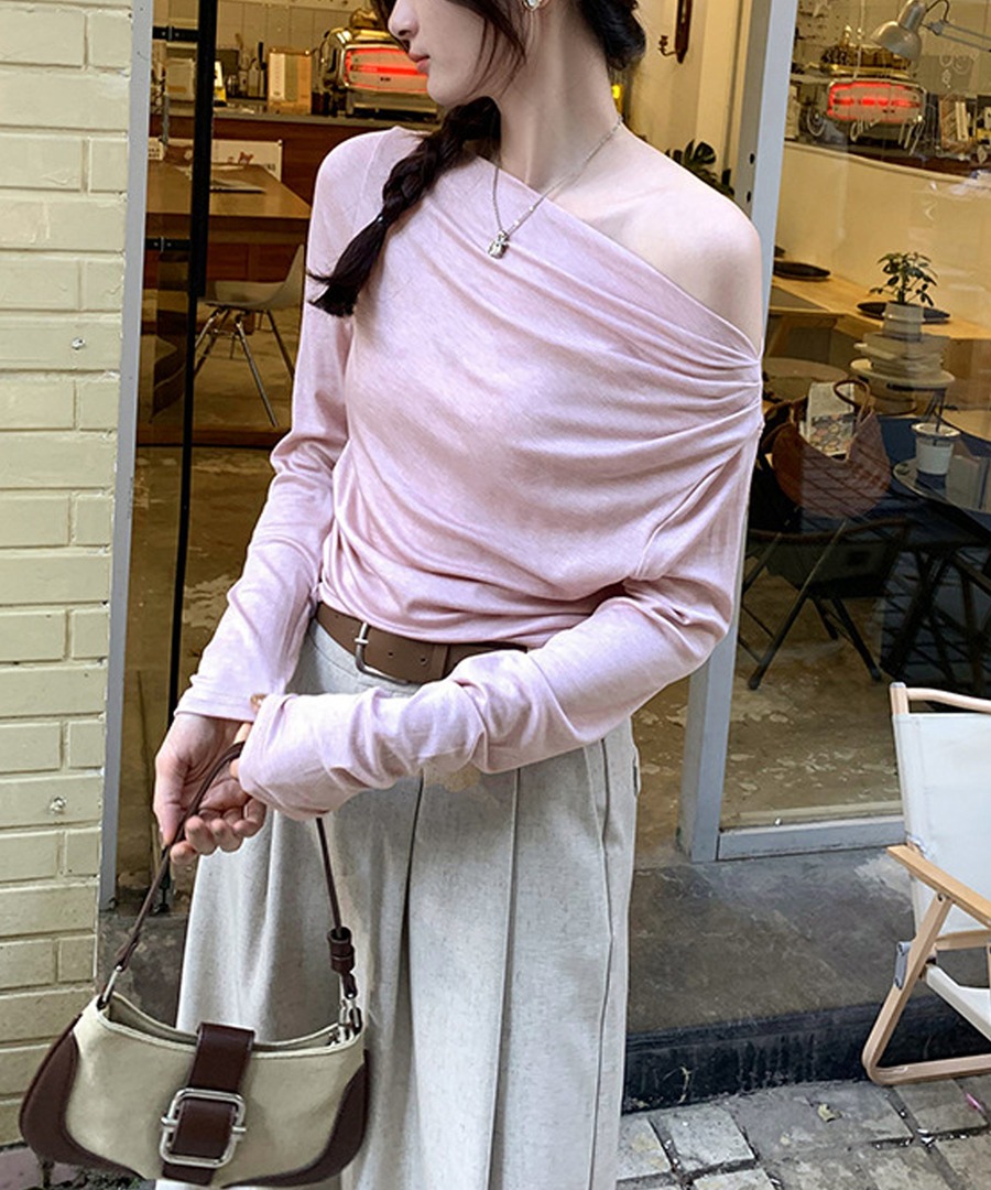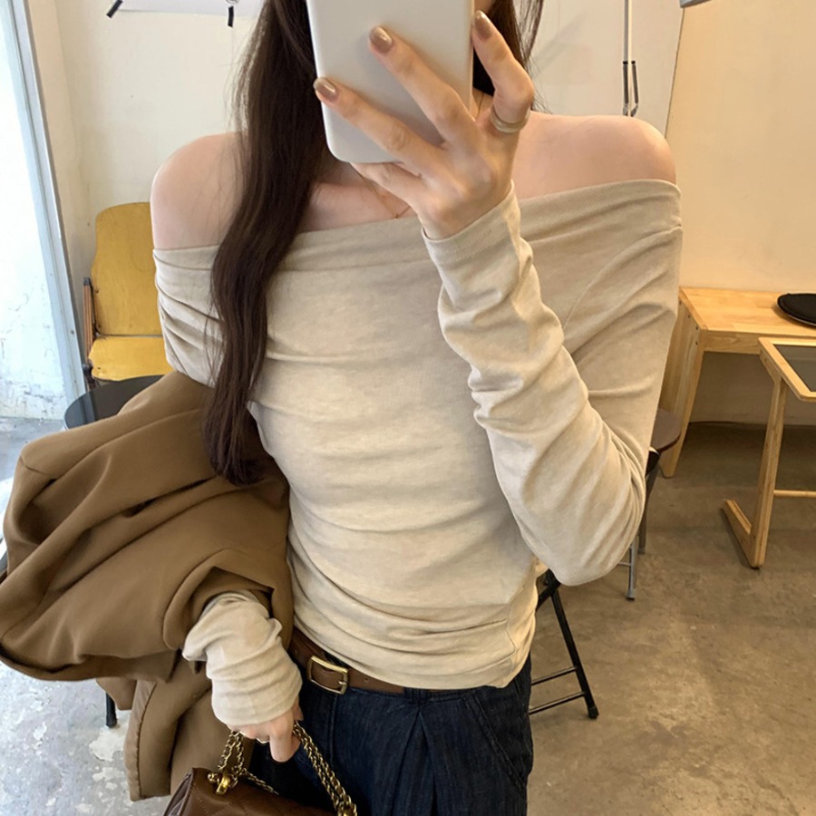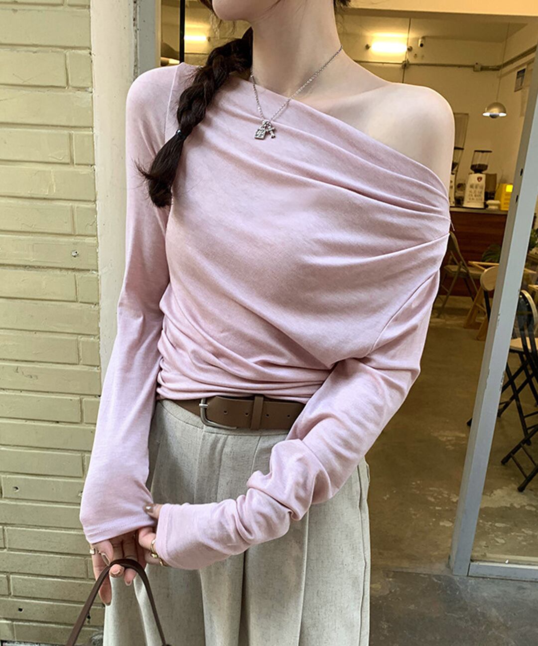 44.【トップス】オフショルダー スリム 長袖 インナーシャツ