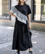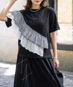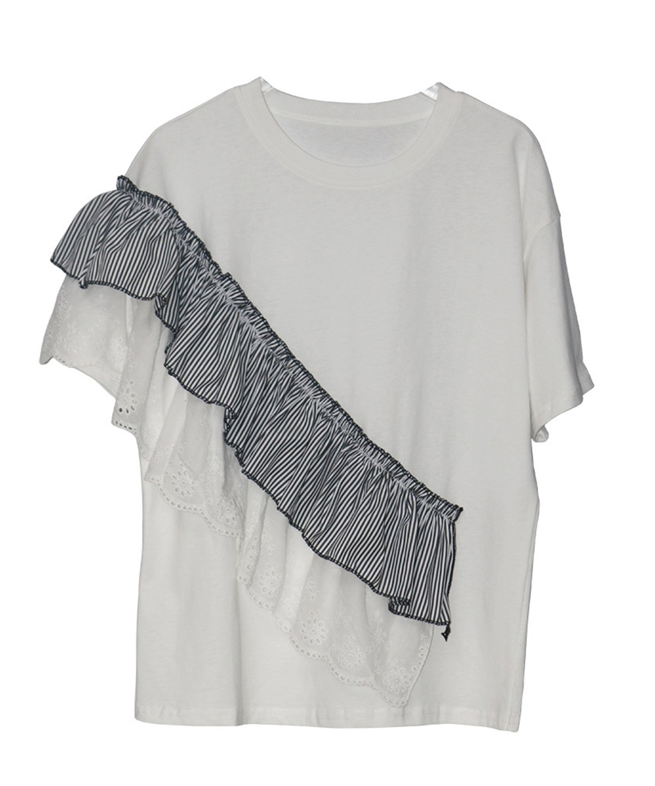 46.【トップス】切り替え ストライプ レース デザイン感 ユニークで上品 Tシャツ