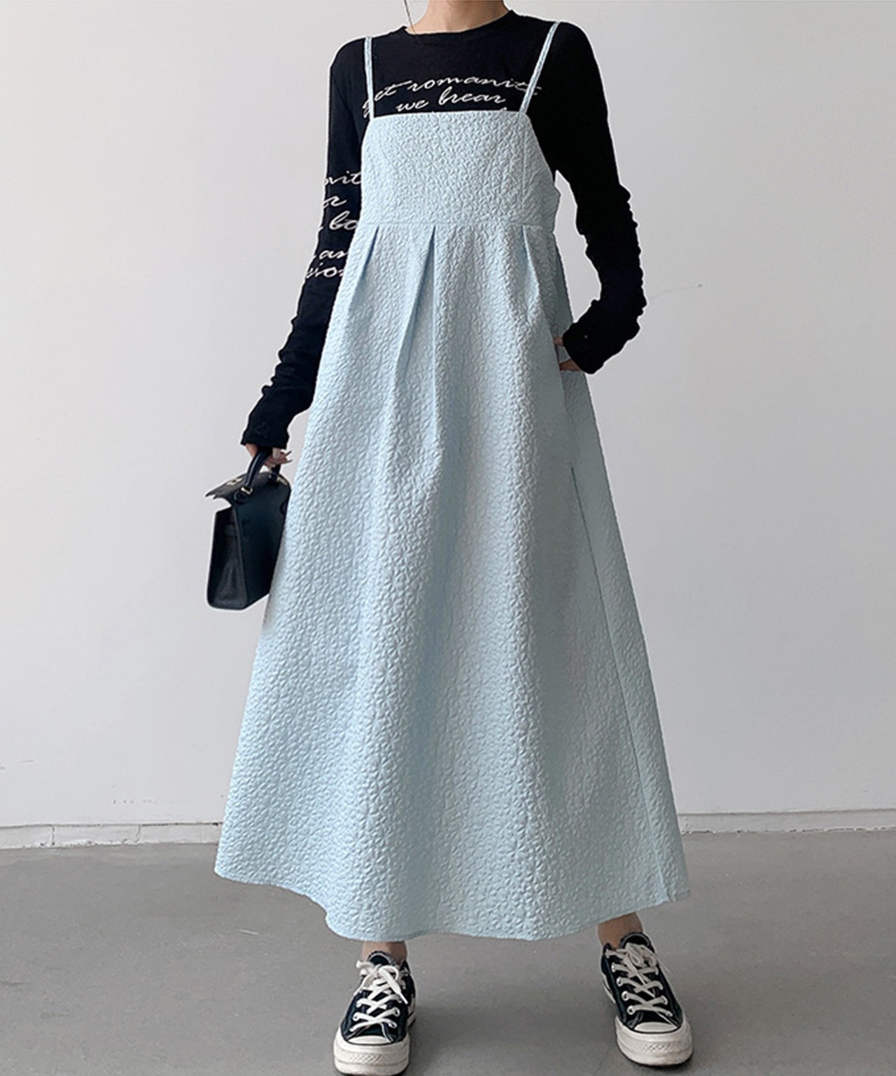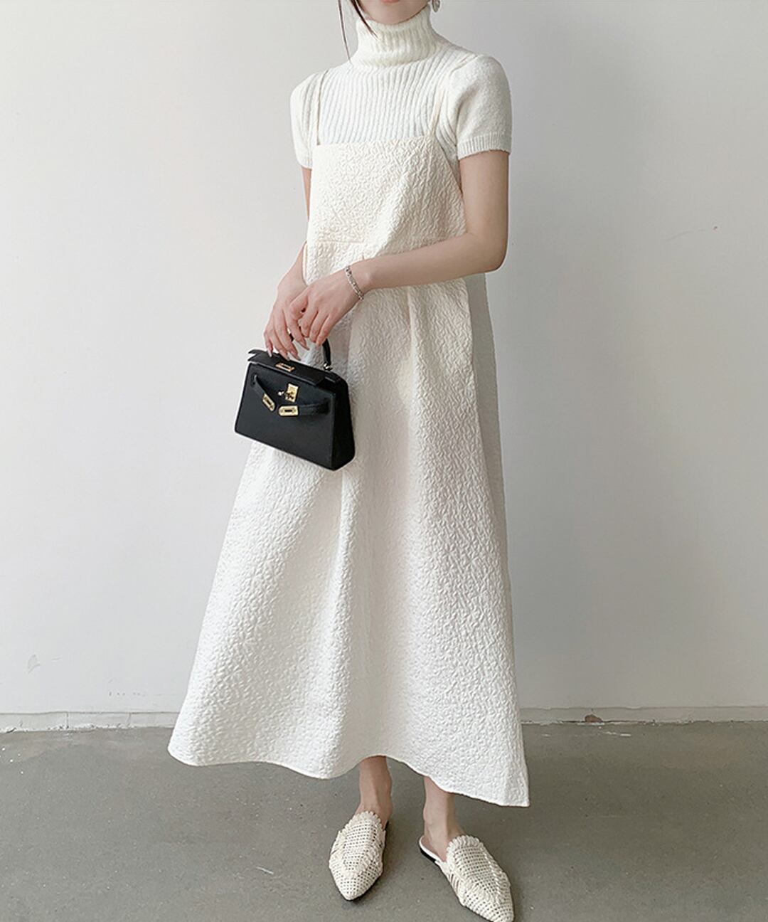 52.【ワンピース】ギャザー プルオーバー オフショルダー ノースリーブ キャミワンピース