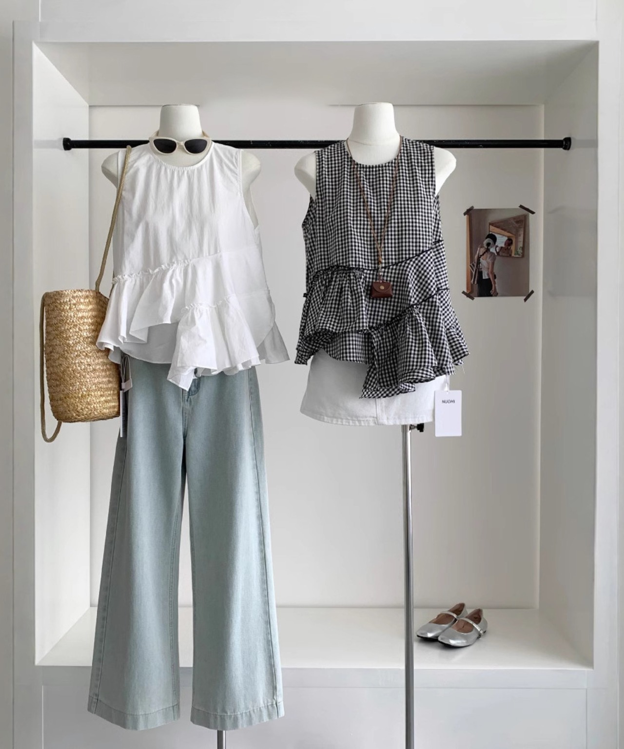 【トップス】ゆるシルエットのフリルクルーネックトップス