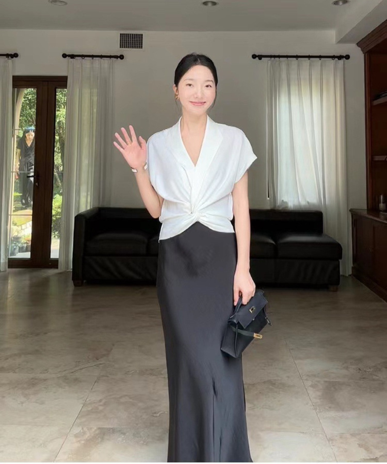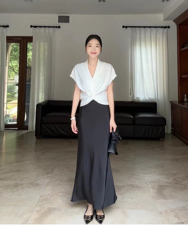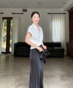 【セットアップ】【単品注文】Vネックねじりデザインシャツ+ハイウエスト美シルエットマーメイドスカート