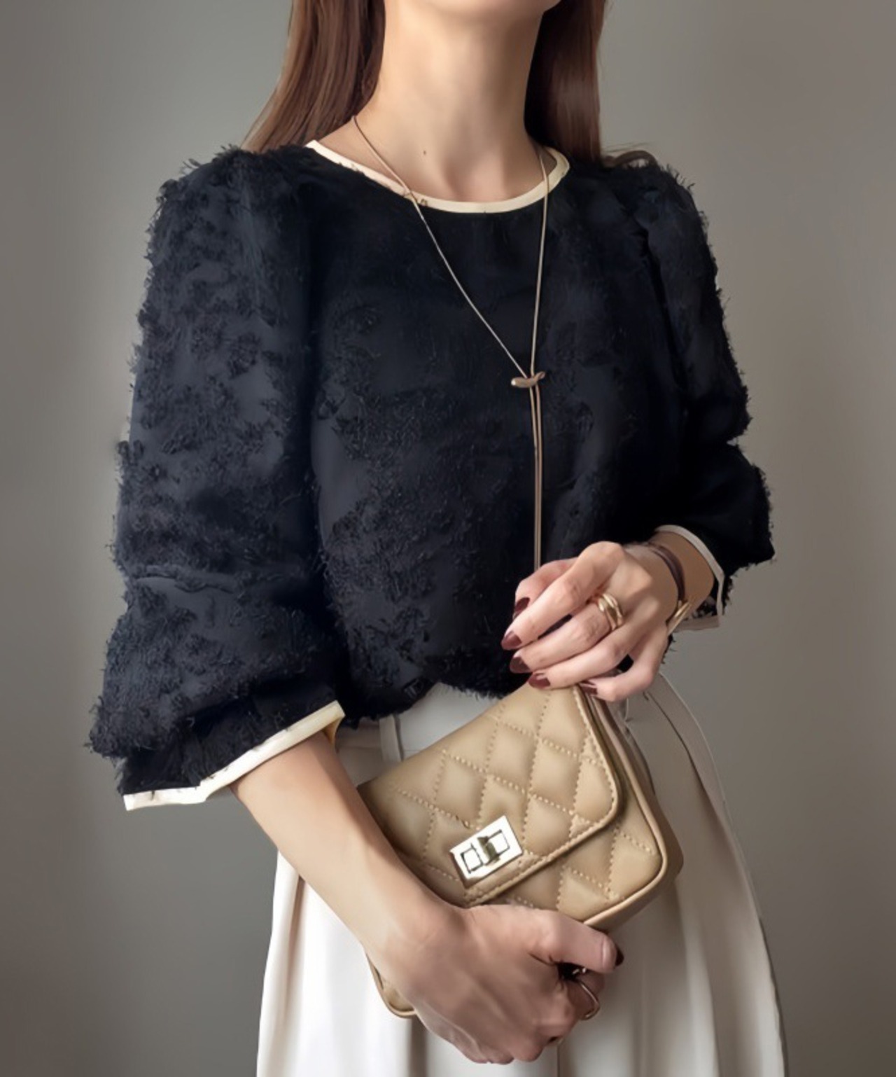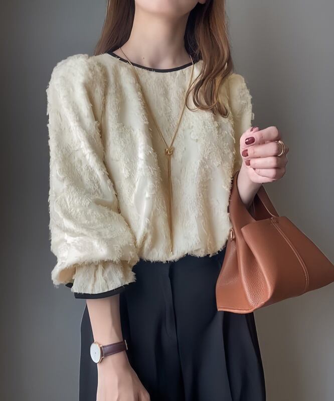 ♪tiktokライブ商品【トップス】フラワープリントベルスリーブクルーネックシフォンシャツ