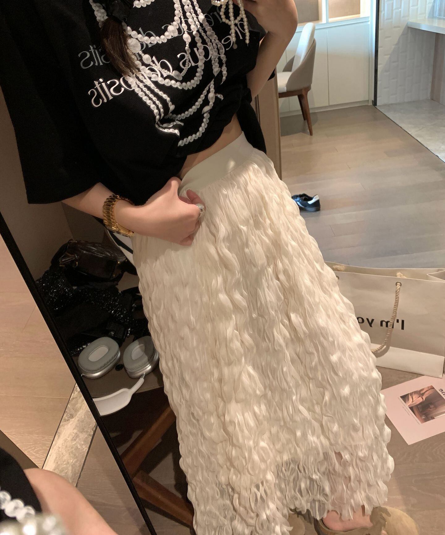 【商品名】【ボトムス】ギャザー入り波打つ不規則ハイウエスト細見えスカート