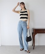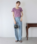 【ボトムス】ビジュー付き ゆったりストレートデニムパンツ