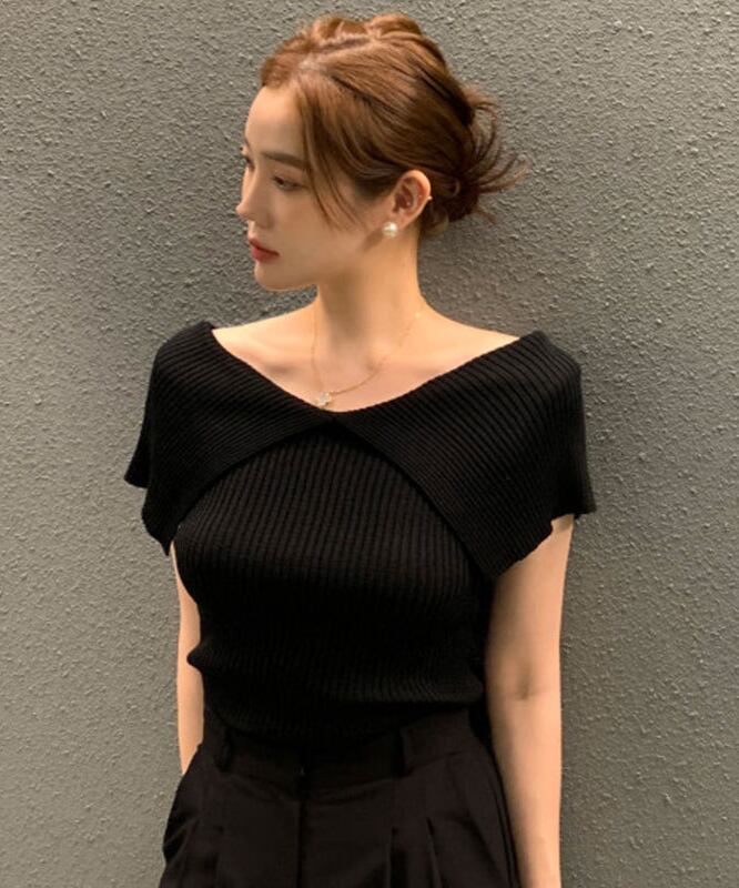 【トップス】スリム見え万能オフショルダーカラーニットトップス
