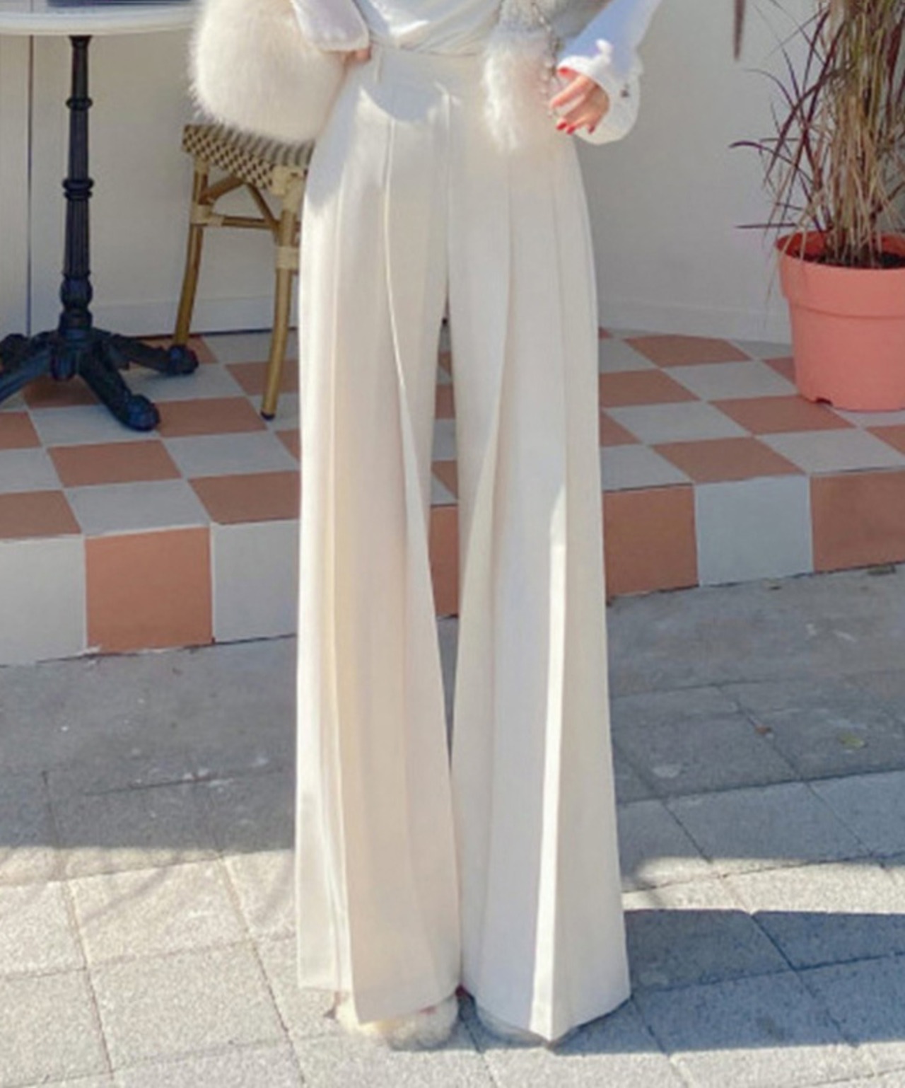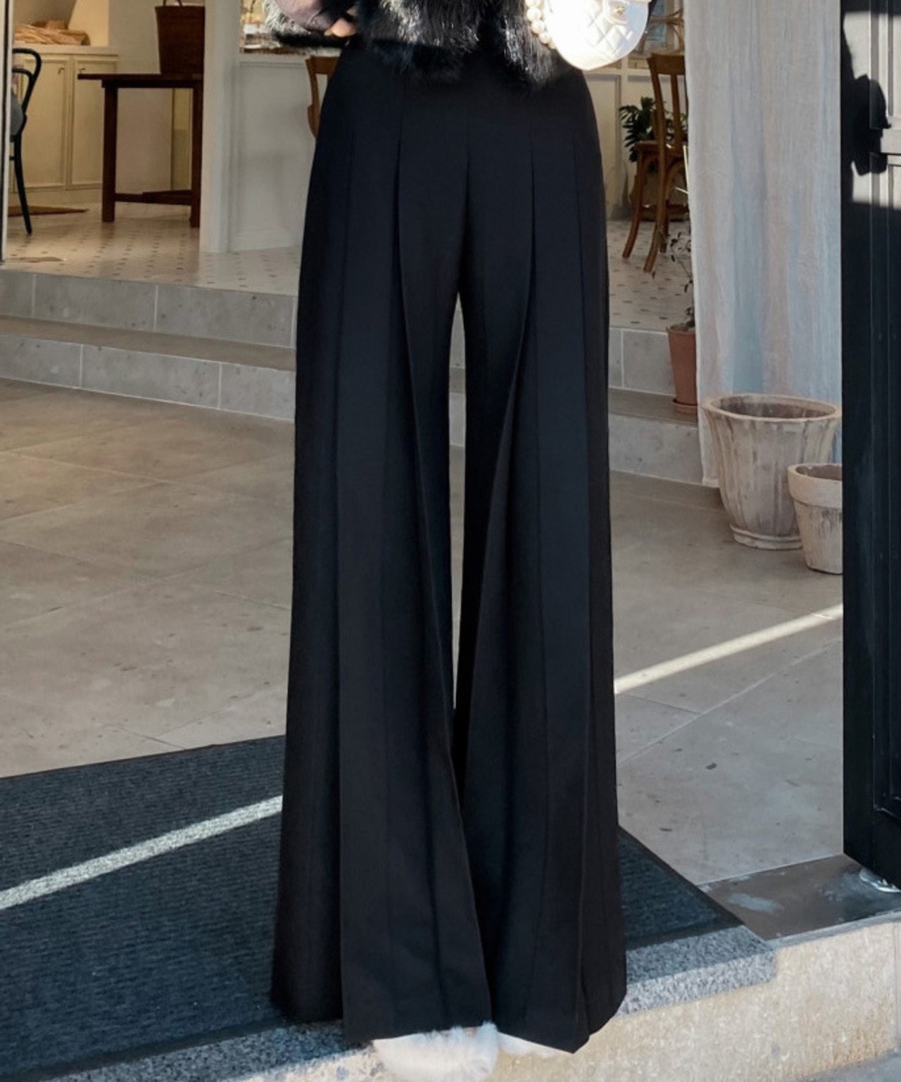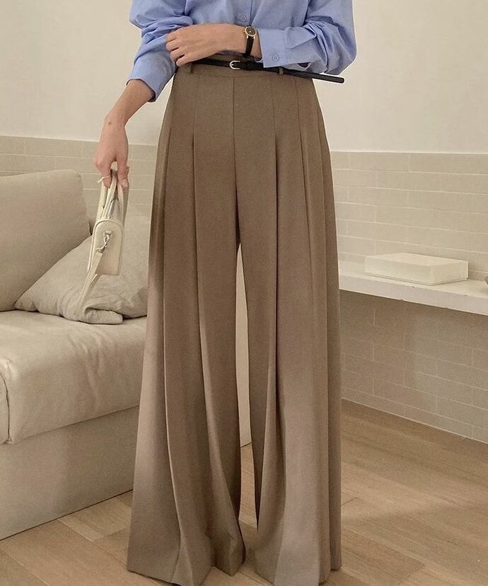 【ボトムス】ハイウエストのタック入りワイドパンツ