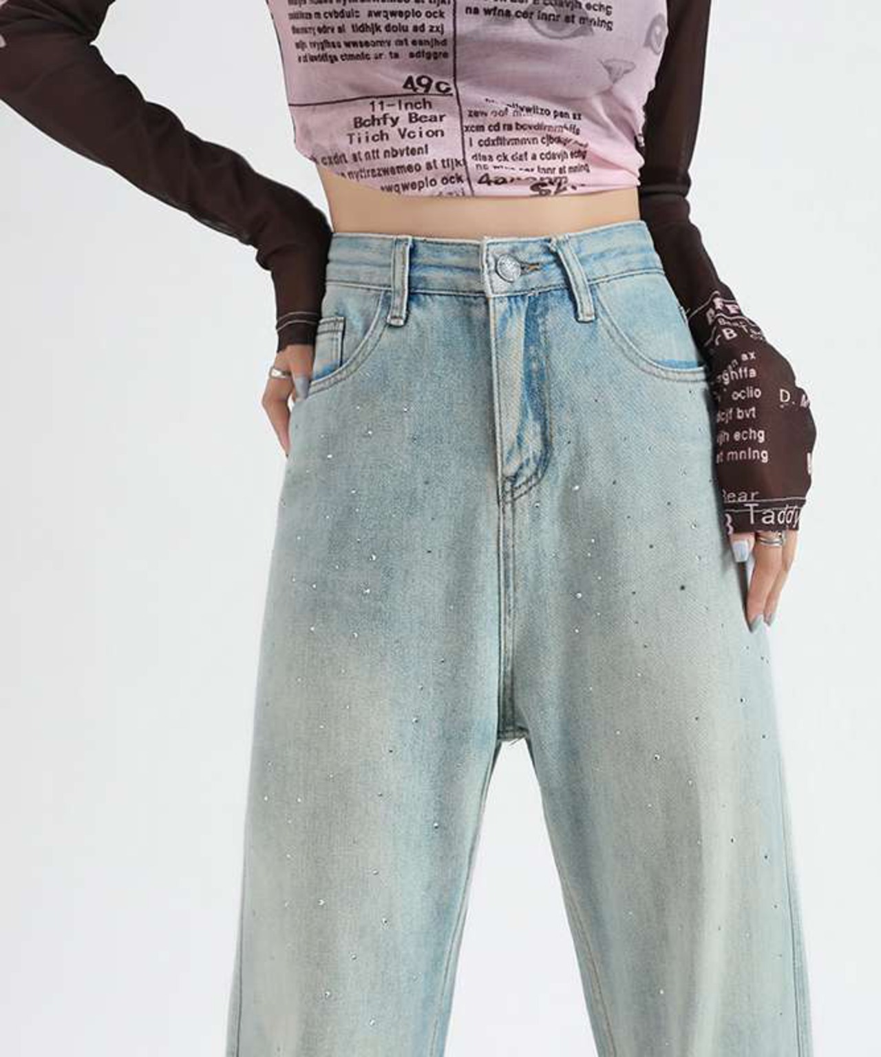 ♪tiktokライブ商品【ジーンズ】激安販売中hot!ワイドパンツ ダイヤ付き 柔らかい 着心地良い 個性 甘カッコウイイ ストリートスタイル