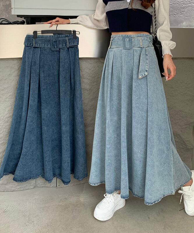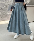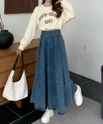 【ボトムス】ヴィンテージ風 ハイウエスト ゆったり細見え デニムスカート