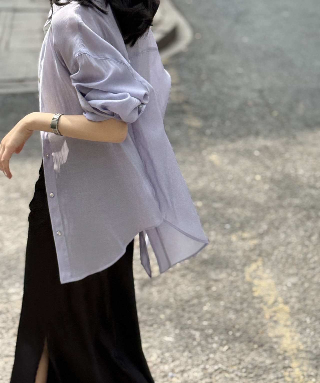 ♪tiktokライブ商品【トップス】フレンチテイストのシックなバックスリット テンセルシフォン 薄手ブラウス 透け感×アウターレイヤード可能